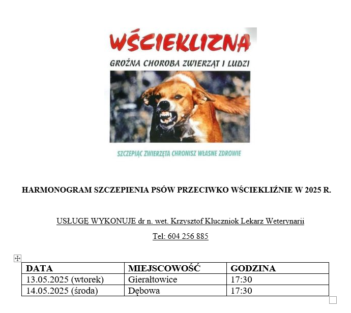 Szczepienie psów (Gierałtowice, Dębowa)