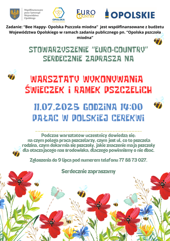 Warsztaty będą realizowane w ramach zadania: “Bee Happy- Opolska Pszczoła miodna” jest współfinansowane z budżetu Województwa Opolskiego w ramach zadania publicznego pn. “Opolska pszczoła miodna”.