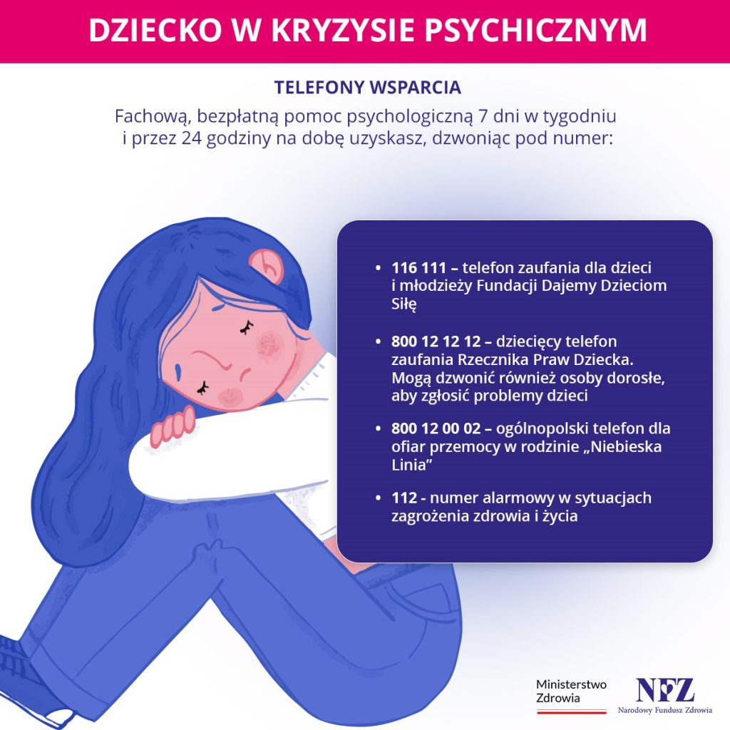 Z uwagi na fakt ograniczenia dostępu do wsparcia psychologiczno – pedagogicznego, który w roku szkolnym umożliwiają placówki oświatowe Gminy Reńska Wieś, poniżej zamieszczamy informacje i wskazówki na temat form specjalistycznej pomocy psychologicznej i psychiatrycznej dla dzieci i młodzieży wraz z wykazem miejsc na terenie Opolszczyzny bezpłatnego jej świadczenia w ramach NFZ (bez skierowania).