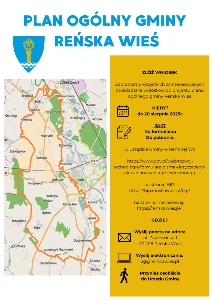 Ogłoszenie o przystąpieniu do sporządzenia planu ogólnego gminy Reńska Wieś – pobierz