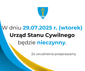 Uwaga – Urząd Stanu Cywilnego nieczynny 29 lipca 2025 by Ania in Aktualności, Komunikaty Home Aktualności