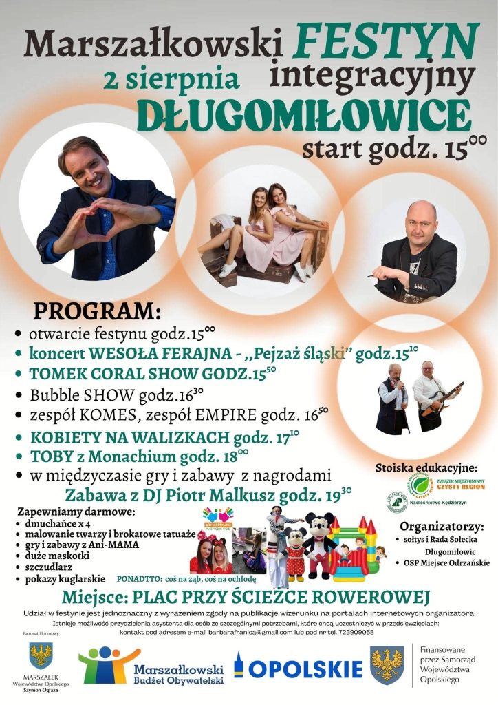 Sołtys i Rada Sołecka w Długomiłowicach zapraszają od 15:00 na Marszałkowski Festyn Integracyjny do Długomiłowic przy ścieżce rowerowej Szlakiem Kolejowym.