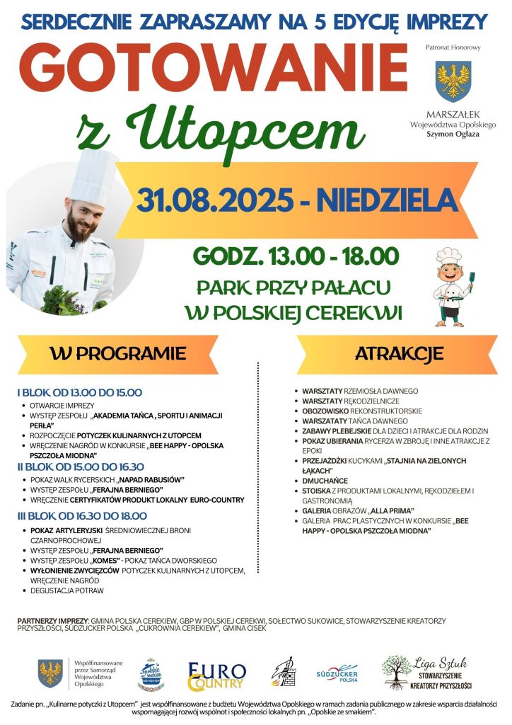 Zapraszamy na „Gotowanie z Utopcem” 25 sierpnia 2025 by Tomasz in Aktualności, Kalendarz Home Aktualności 31 sie from 13:00 to 18:00 Aktualności Kalendarz