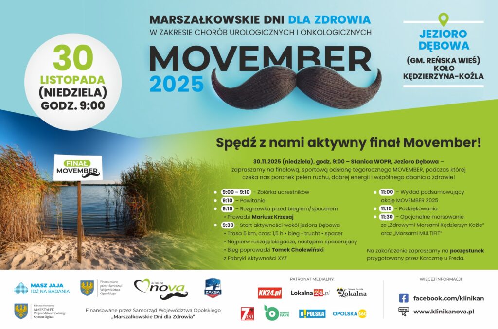 Ostatnim akordem tegorocznej akcji Movember w województwie opolskim, skupiającej się na profilaktyce męskich chorób nowotworowych jąder i prostaty, odbędzie się nad akwenem Dębowa.