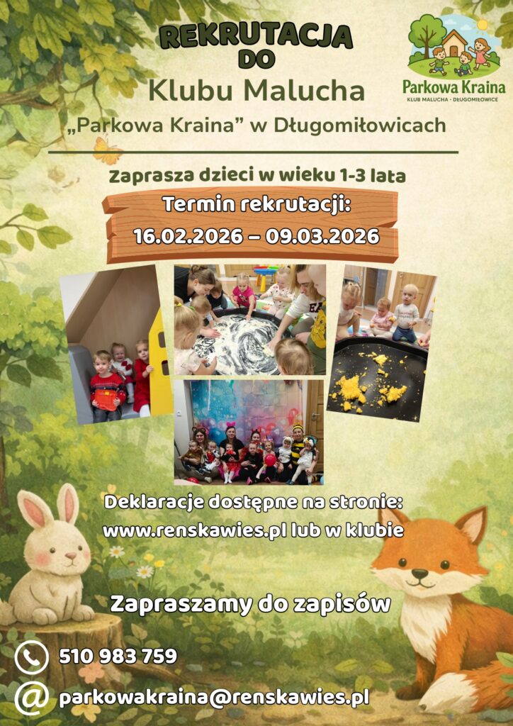 Rekrutacja do Klubu Malucha w Długomiłowicach „Parkowa Kraina”